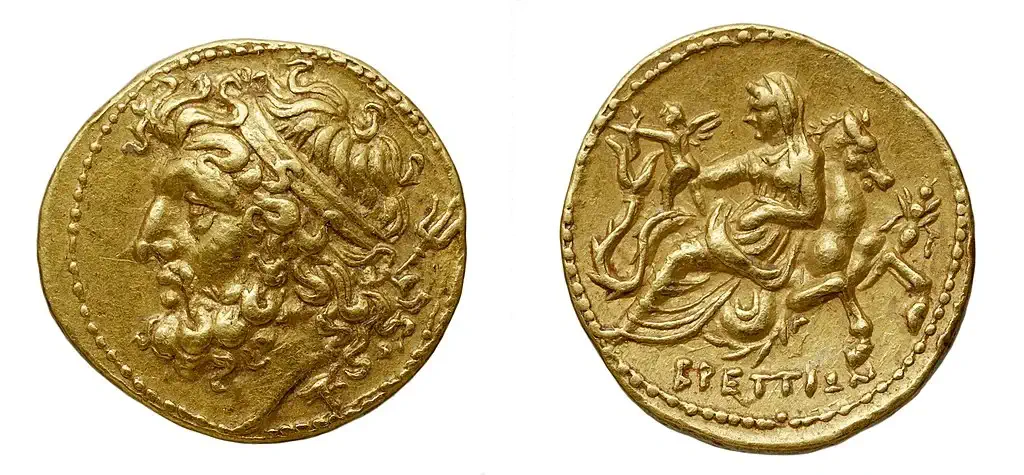 Gold was first used in a non standardised form. Then governments in the ancient world started to create standardised gold coins to make trade more efficient.